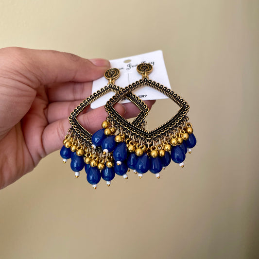 Golden Rhombus Oxidised Earring (Blue Beads) For Resin Art