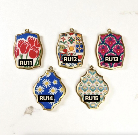 Pack of 3 - Tile Shape Designs - Resin Base Earring Charms Pendant (RU140 - RU143)(4-5 day Dispatch)
