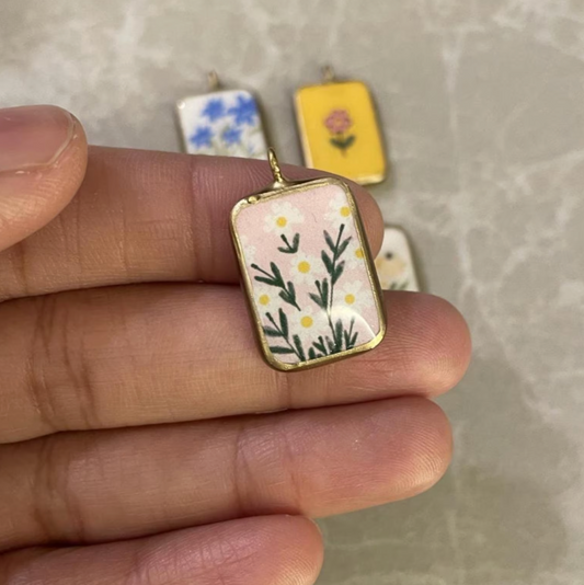 Flower Basic Rectangle Shape Designs - Resin Base Earring Charms Pendant (RU39 - RU44)(4-5 day Dispatch)