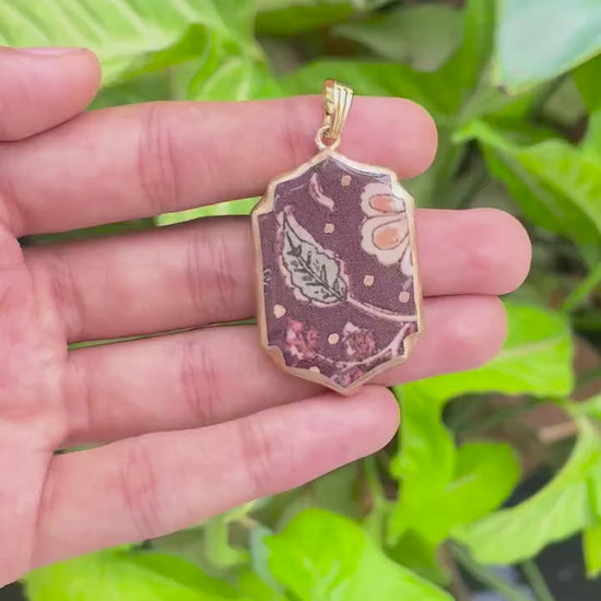 Brown Fabric Motif Shaped - Cold Porcelain Charms Pendant (With Bail)