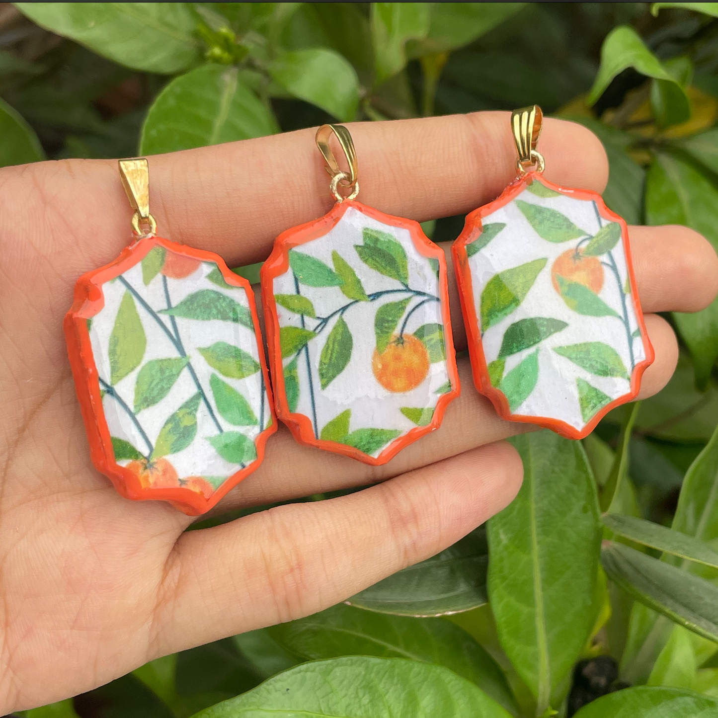 Summer Orange pattern Motif Shaped - Cold Porcelain Charms Pendant (With Bail)