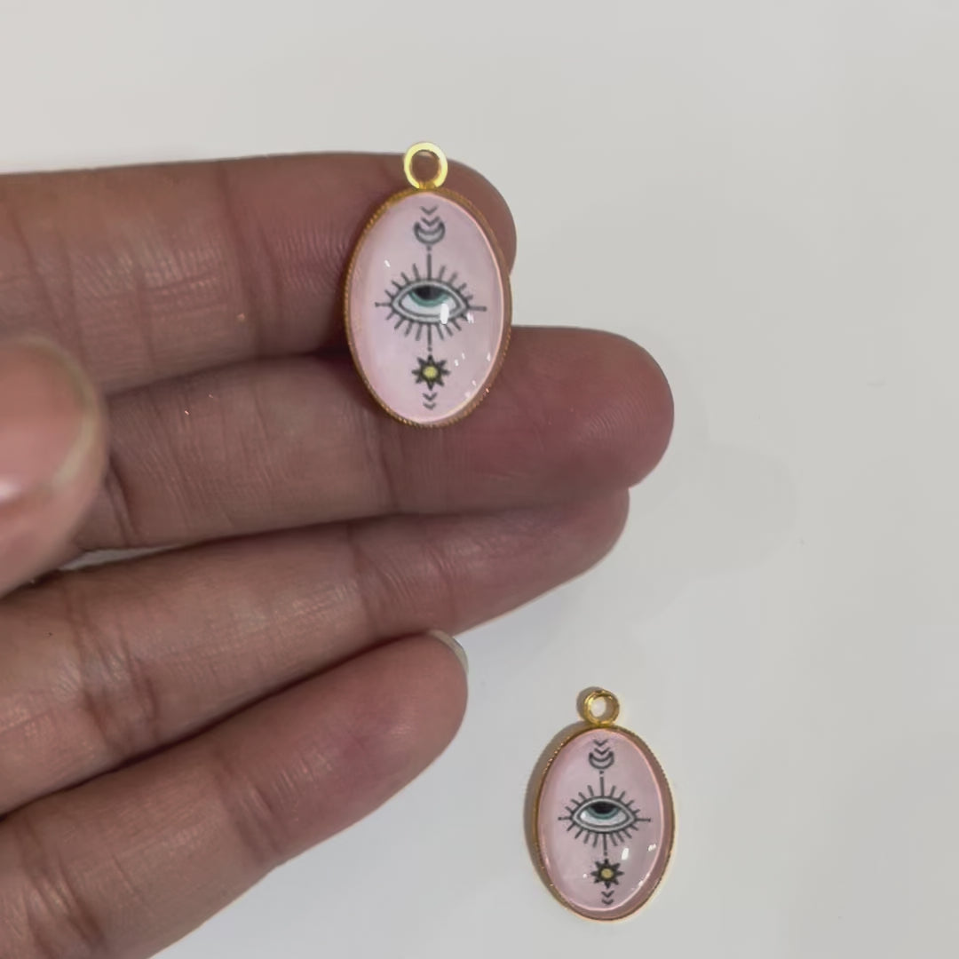 GN014 - Pack of 2pcs - Evil Eye Boho - Glass Pendants with Metal Base