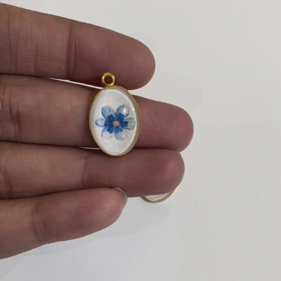 GN019 - Pack of 2pcs - Water Colour Flower - Glass Pendants with Metal Base