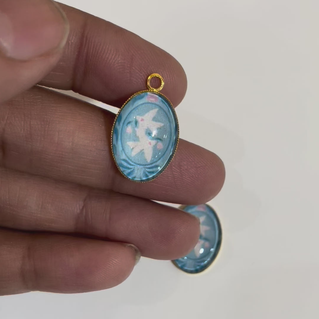 GN023 - Pack of 2pcs - Pastel Love Birds - Glass Pendants with Metal Base