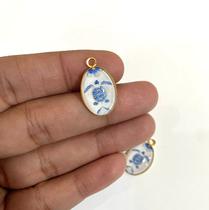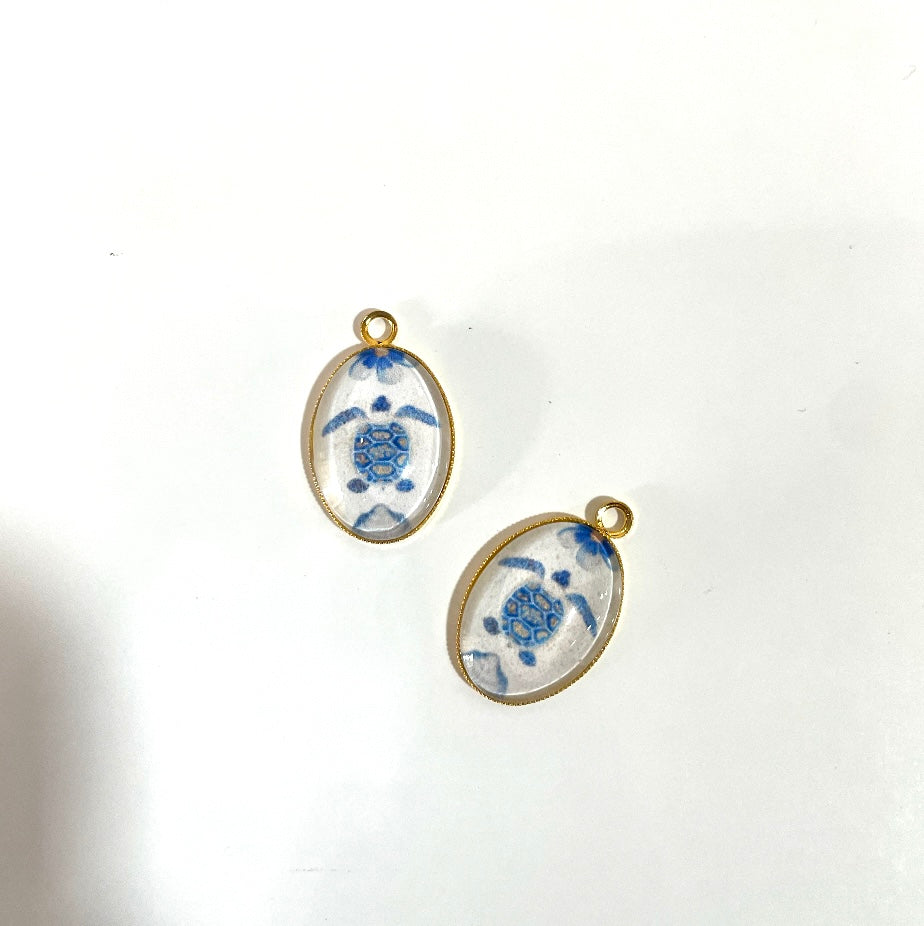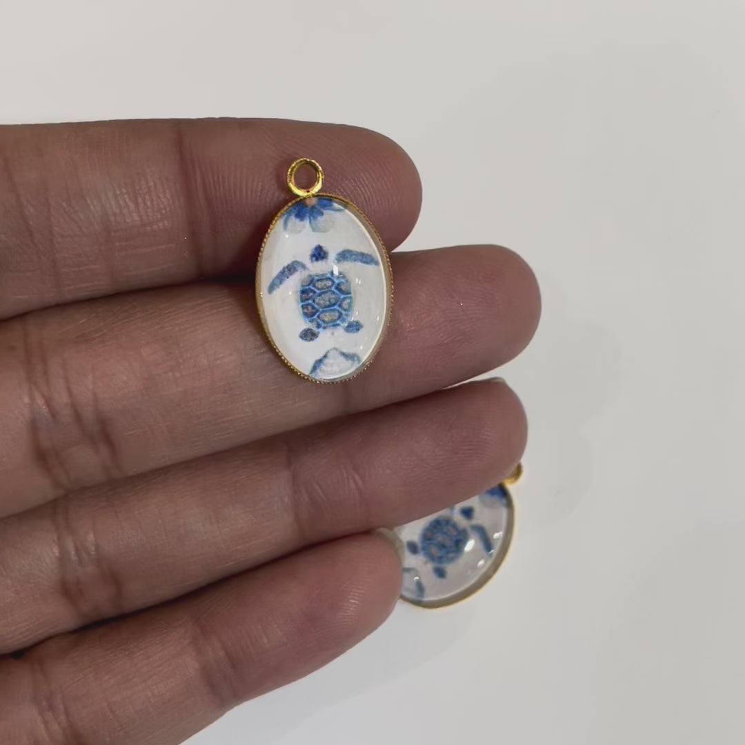 GN024 - Pack of 2pcs - Water Color Sea Creatures - Glass Pendants with Metal Base
