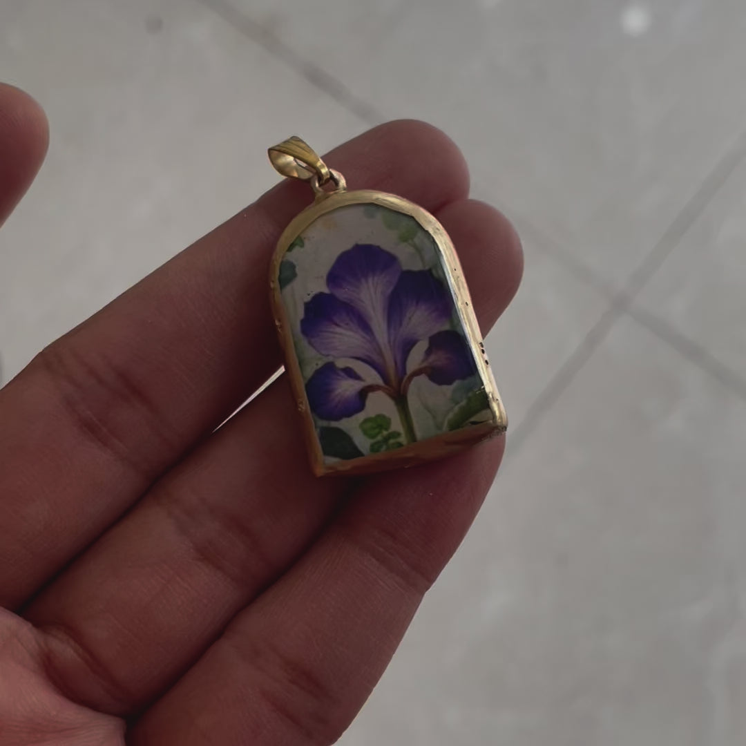 Purple Orchid Bloom Pillar Shaped - Cold Porcelain Charms Pendant (With Bail)