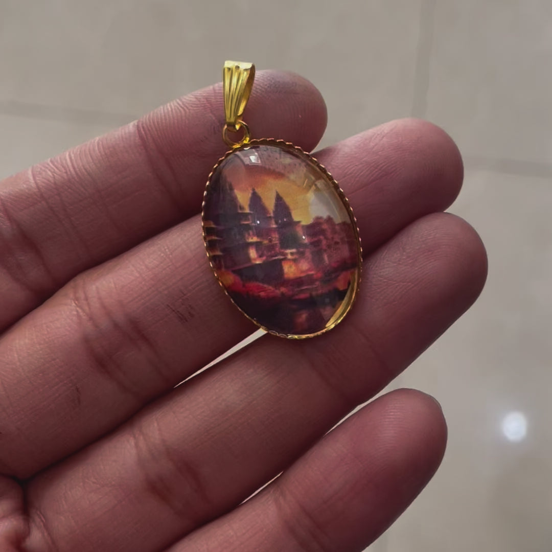 Elevate your style with this elegant pendant, meticulously crafted with a durable brass base and adorned with a delicate glass centerpiece. Measuring 18mm x 25mm, its compact yet striking design is perfect for everyday elegance or special occasions.