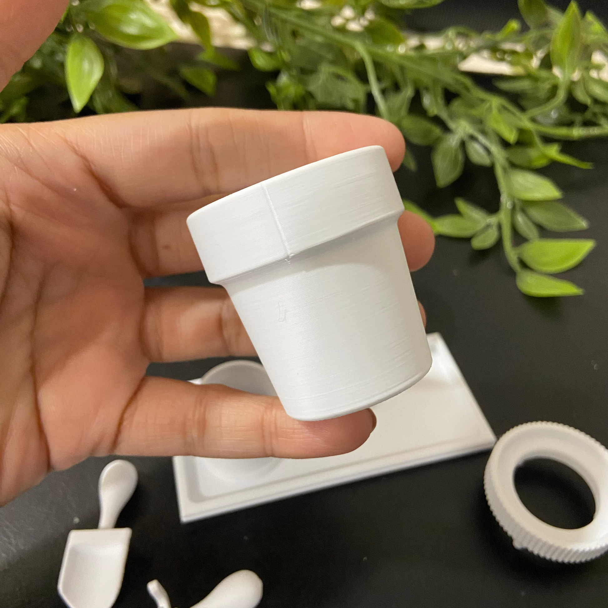 Bring your miniature world to life with this beautifully crafted 3D printed 3-tier shelf. Designed with realistic proportions and a smooth finish, it’s perfect for displaying miniature books, décor pieces, or tiny plants in your dollhouse setup.