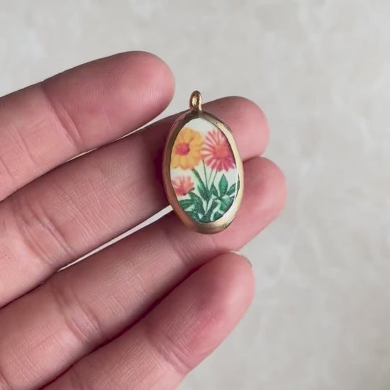 PO10- Orange Yellow Flowers - Cold Porcelain Charms Pendant (Dispatch in 7-9 Days)