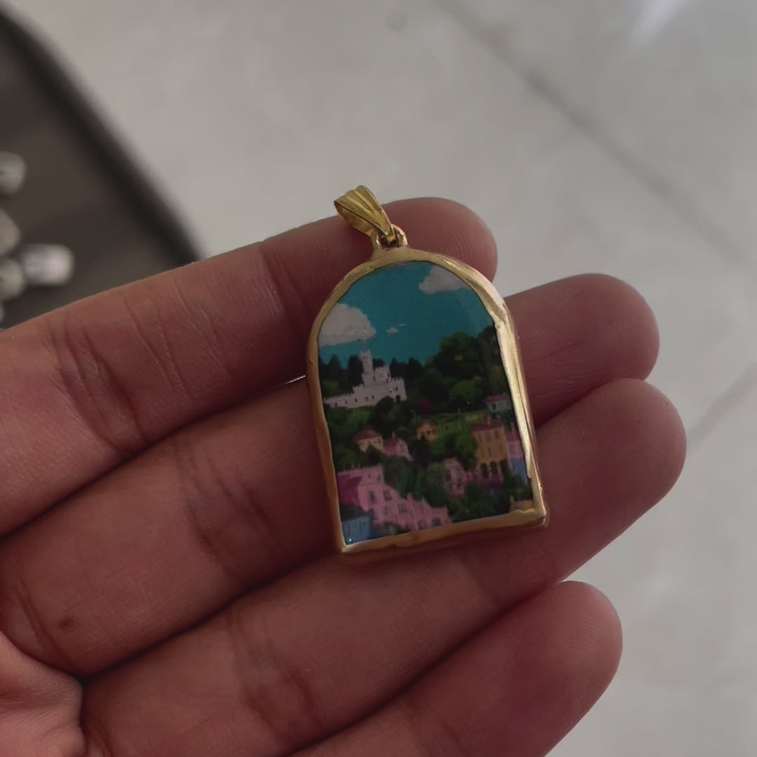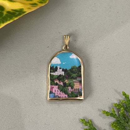 Mountain House Pillar Shaped - Cold Porcelain Charms Pendant (With Bail)