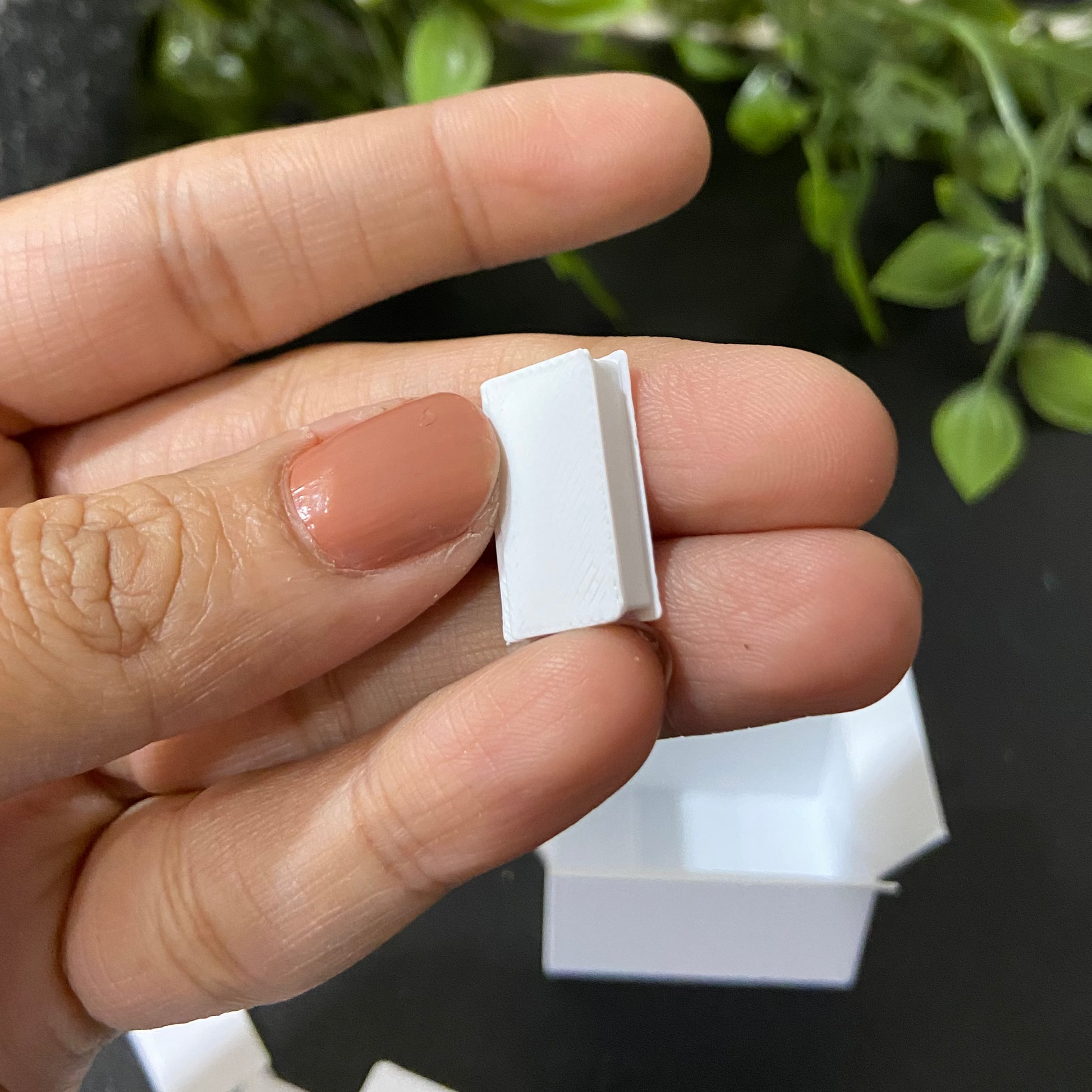 Bring your miniature world to life with this beautifully crafted 3D printed 3-tier shelf. Designed with realistic proportions and a smooth finish, it’s perfect for displaying miniature books, décor pieces, or tiny plants in your dollhouse setup.