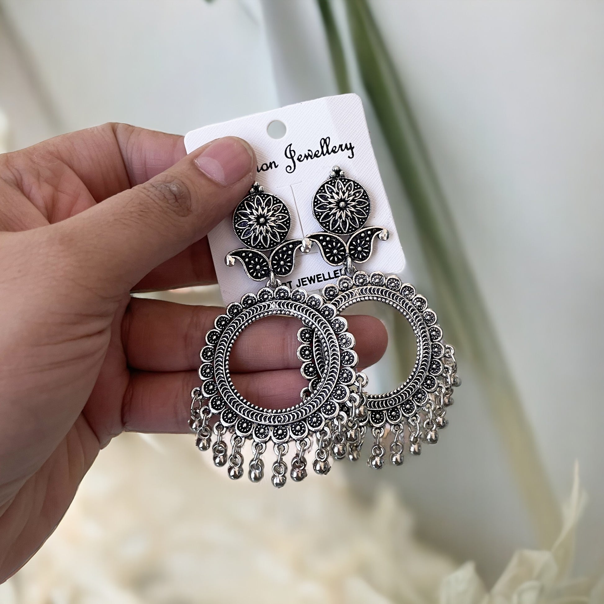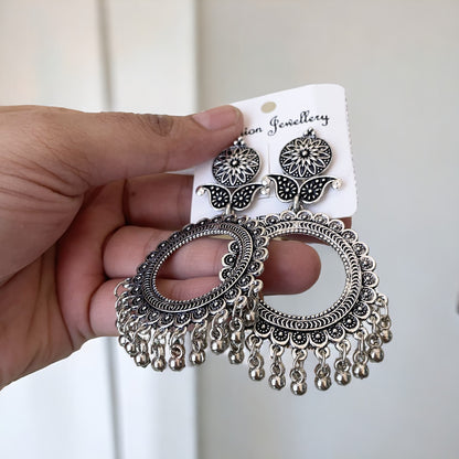 ES09 - Oxidised Jhumka Earring Base (Peacock)