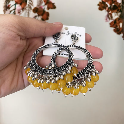 Silver Circle Oxidised Earring (Yellow Beads) for Resin Art