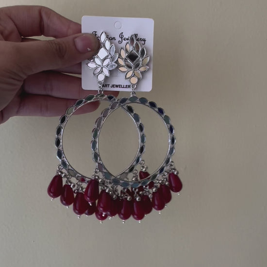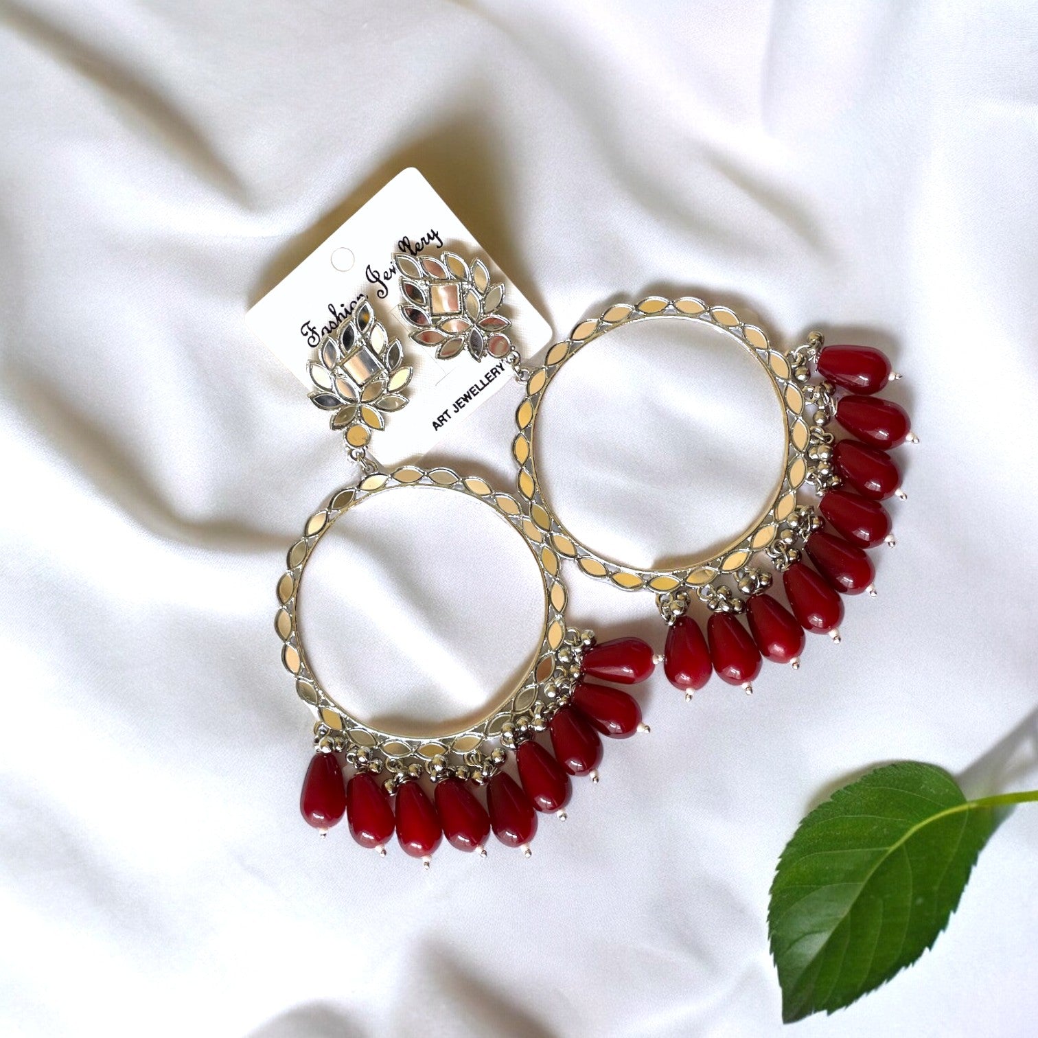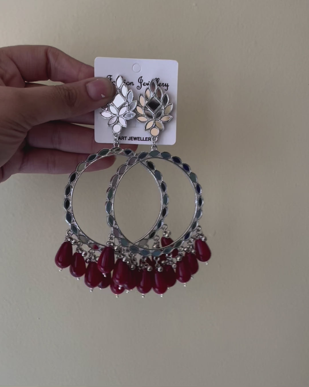 Silver Mirror Earring With Maroon Glass Beads for Resin Art