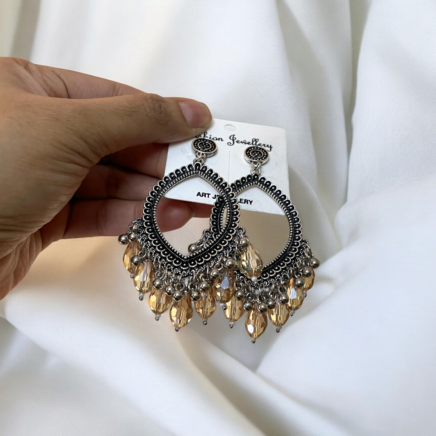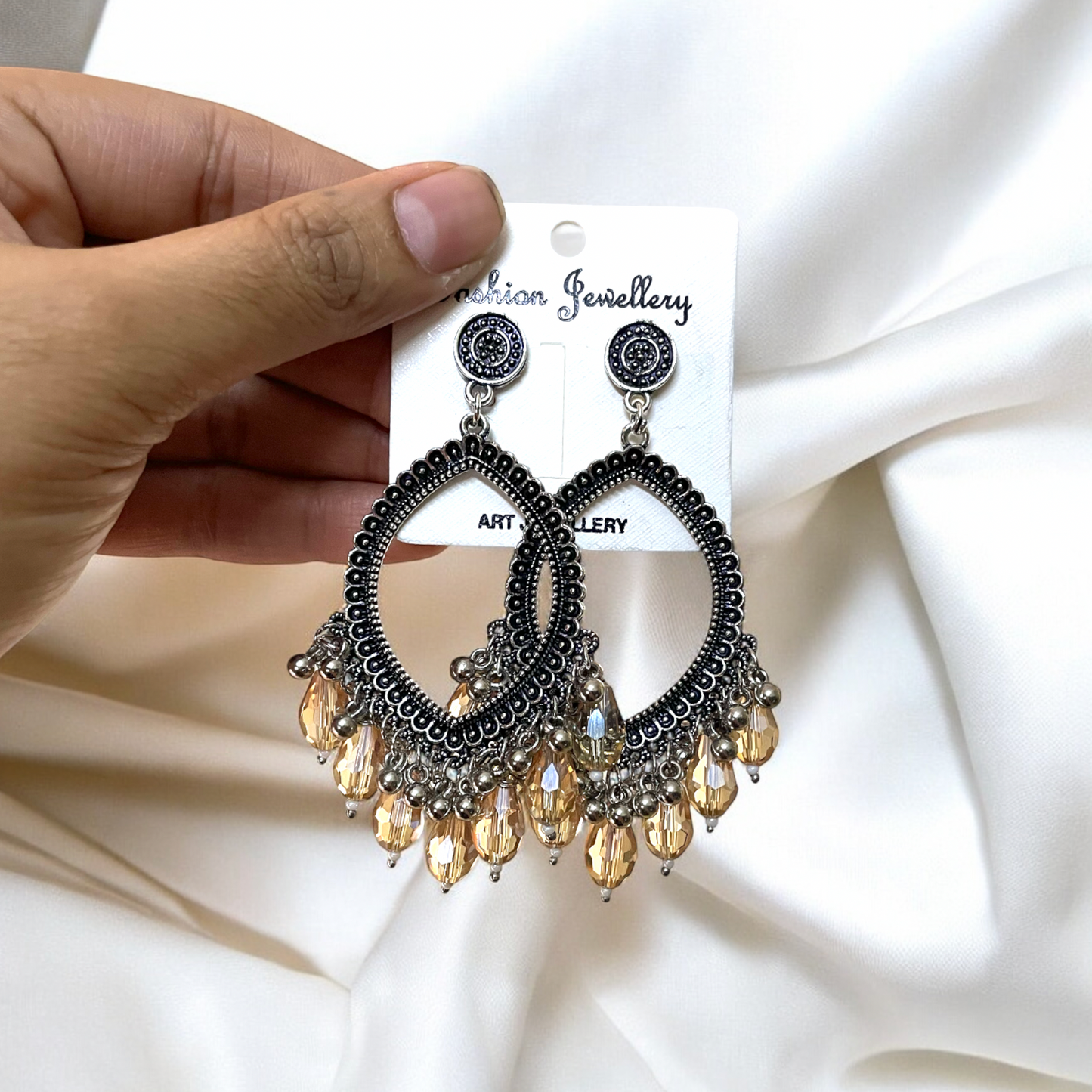 Silver Motif Oxidised Earring (Yellow Brown Crystal Beads) For Resin Art