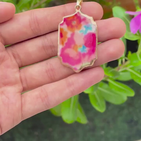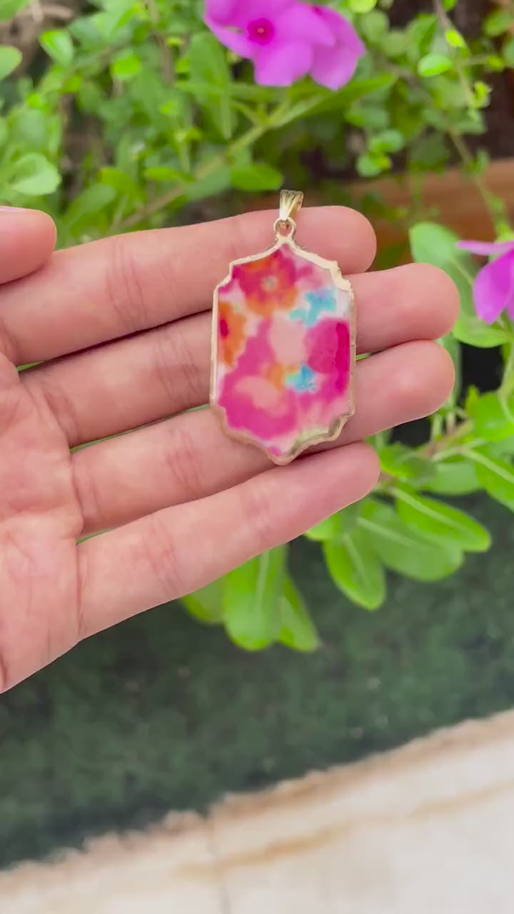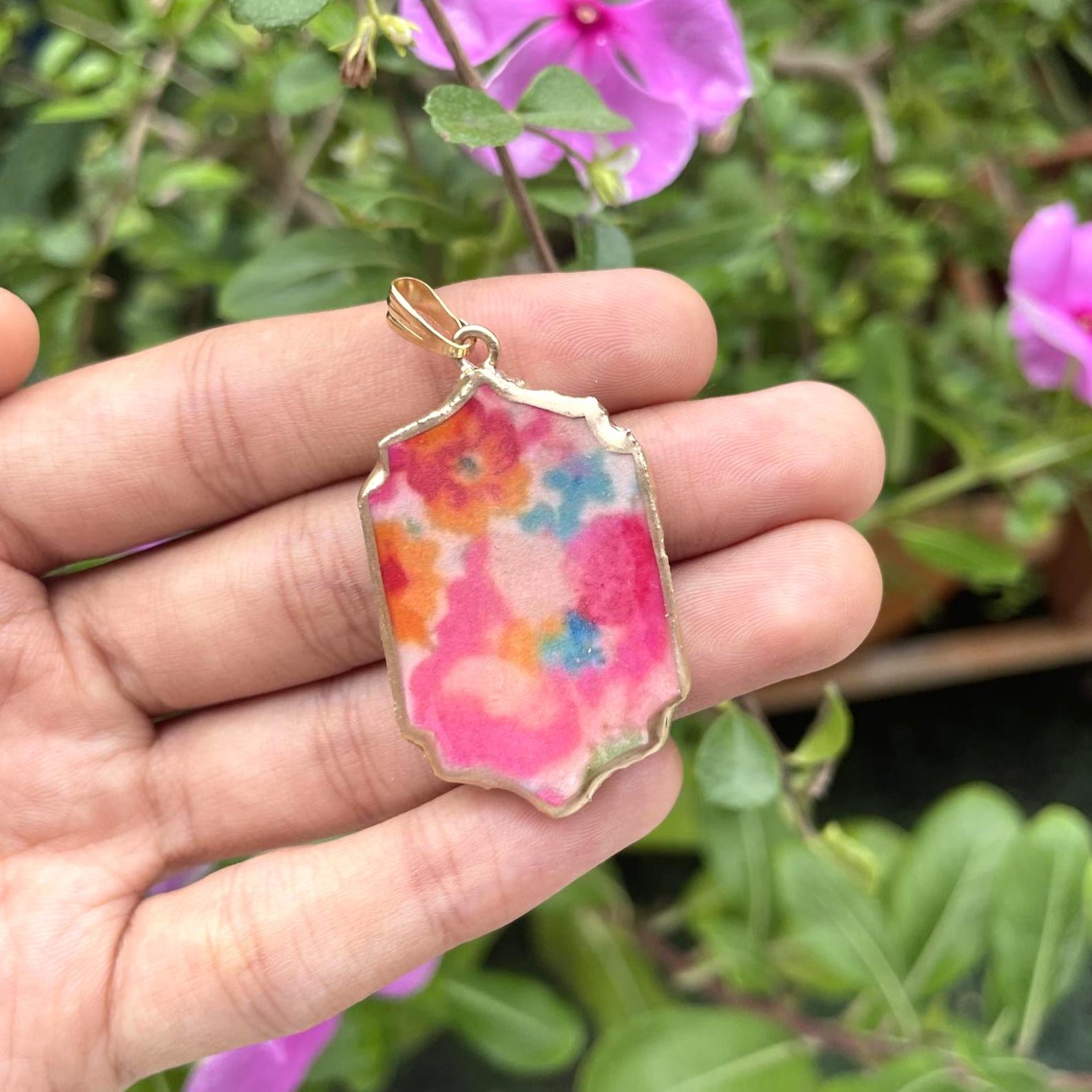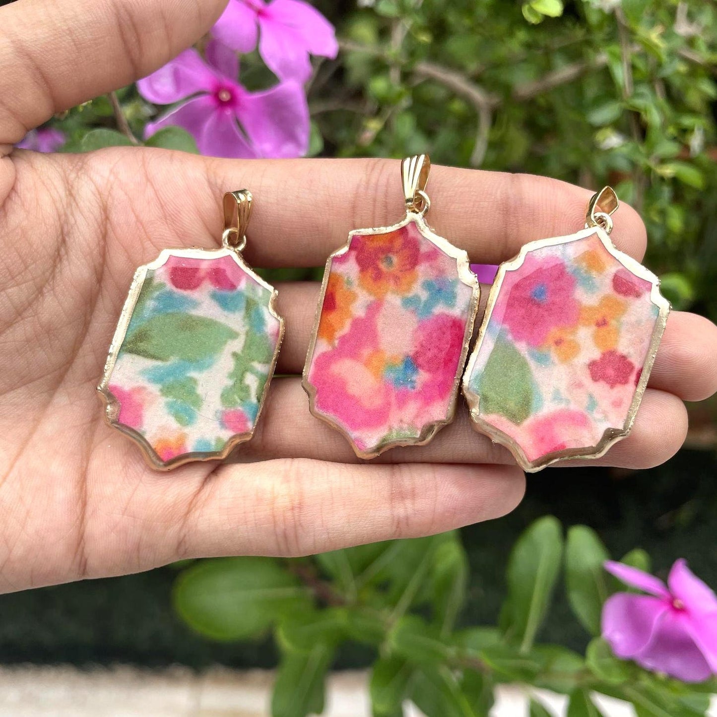 Splash Floral Pattern Motif Shaped - Cold Porcelain Charms Pendant (With Bail)